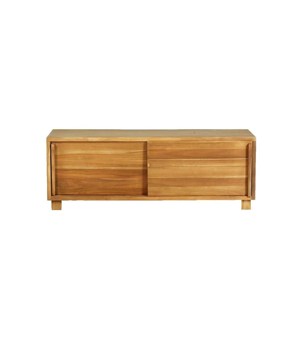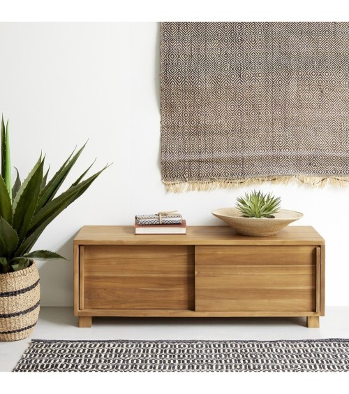 Composé de deux portes coulissantes, ce meuble TV en bois de teck propose une teinte claire et une finition naturelle. Caractéristiques : Teck - Couleur : Naturel - Hauteur : 35 cm - Longueur : 100 cm - Profondeur : 35 cm - Poids : 19 kg - Garantie : 2 ans - Montage : Livré monté. Les + : Bois de teck imputrescible Portes coulissantes Intemporel