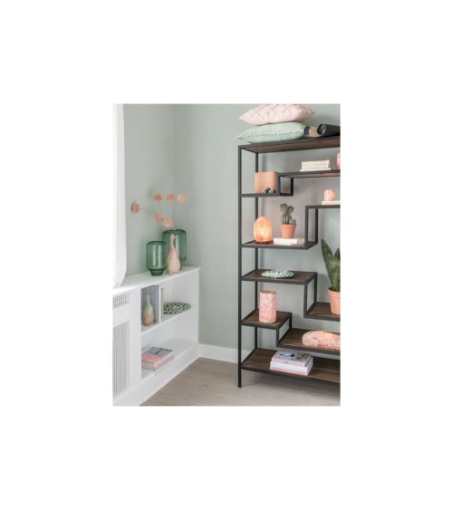 Apportez un style moderne et épuré à votre salon ou bureau, avec cette bibliothèque noire. Très tendance et très pratique ces 6 étagères en forme d'escalier d'exposer vos livres et vos objets de décorations. Existe soit avec des étagères en bois foncé soit tout en métal noir. Description technique : Dimensions : L: 101 x H: 185 x P: 89 cmPoids : 30kgMatière : métal noirÉtagères: en bois foncé ou en métal noirLivré monté...