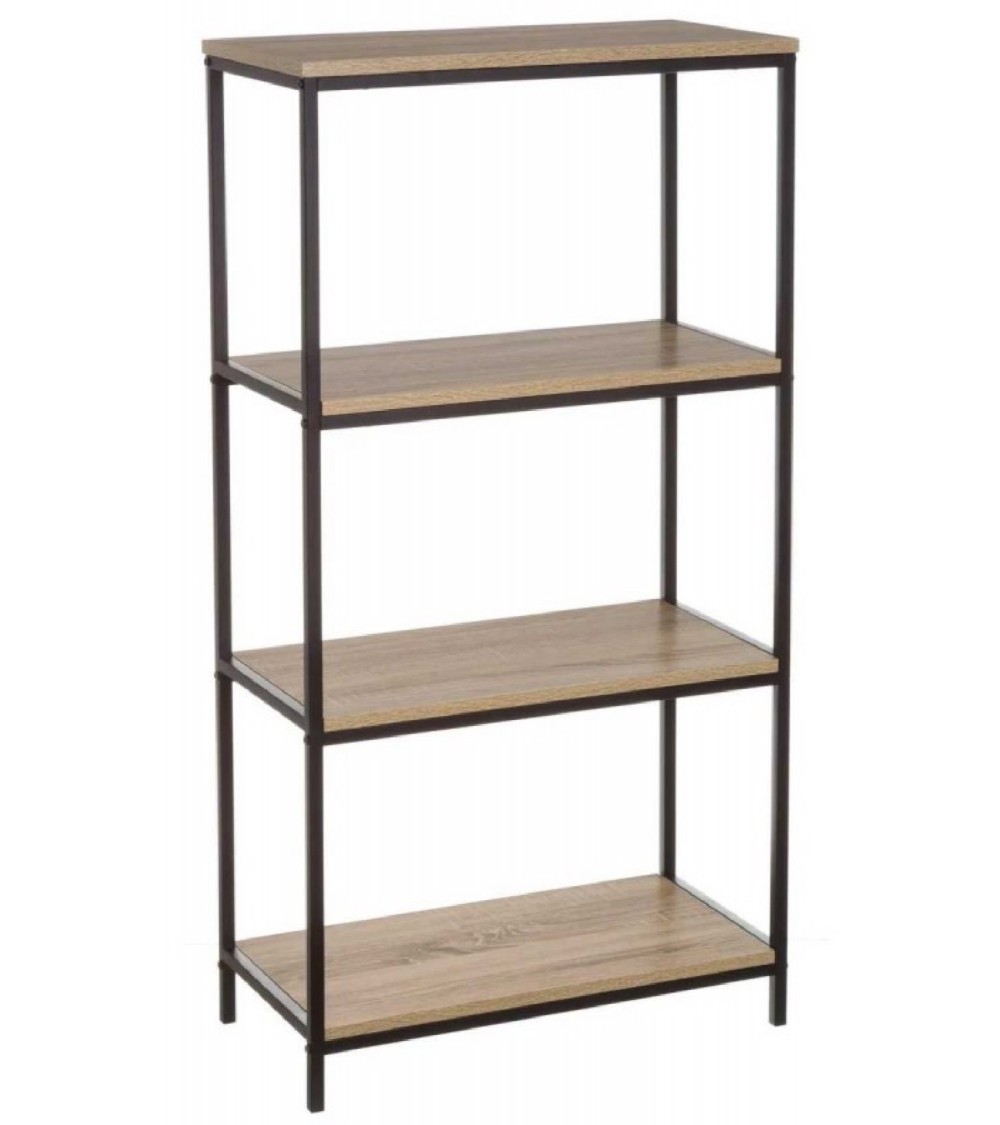 Étagère comprenant 4 étagères en métal noir et bois. Hauteur entre les étagères: 34cm. Dimensions: Longueur 60cm x largeur 30cm x Hauteur 116cm - Couleur: Noir et Bois - Matière: Métal et Bois MDF
