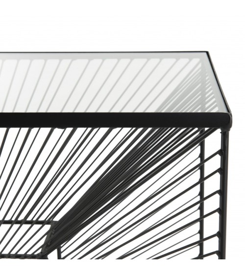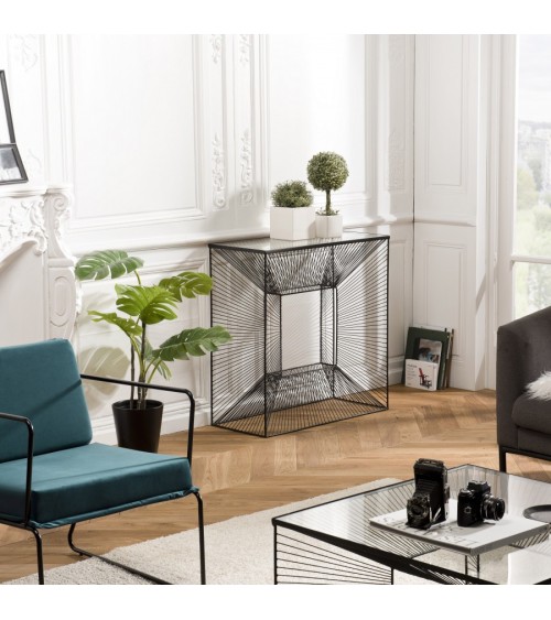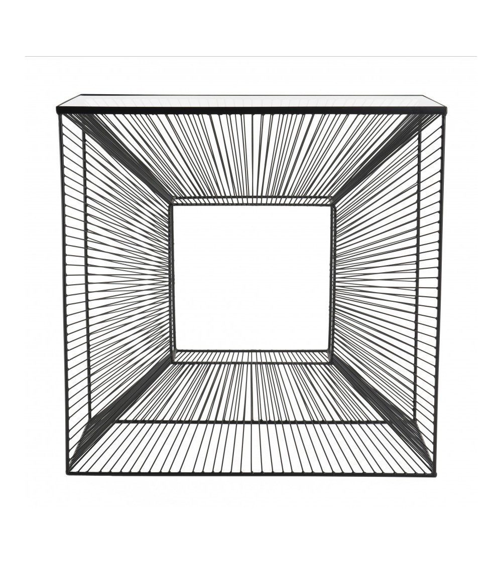 Console carrée métal noir plateau verre. Dimensions : 80,5 x 35,5 x 81 cm. Article en Métal et Verre trempé. Osez l'originalité ! Laissez-vous tenter par cette collection, des meubles design en métal avec des formes géométriques tendances pour décorer votre maison avec finesse. Imaginez cette superbe console en métal noir et verre dans votre intérieur !  Son look raffiné vous séduira au premier coup d'il. Elle trouvera sa place dans chacune de vos pièces pour y faire régner l'élégance.  Son plateau vous permettra d'y poser tous vos objets favoris : bougies, clés, décoration...