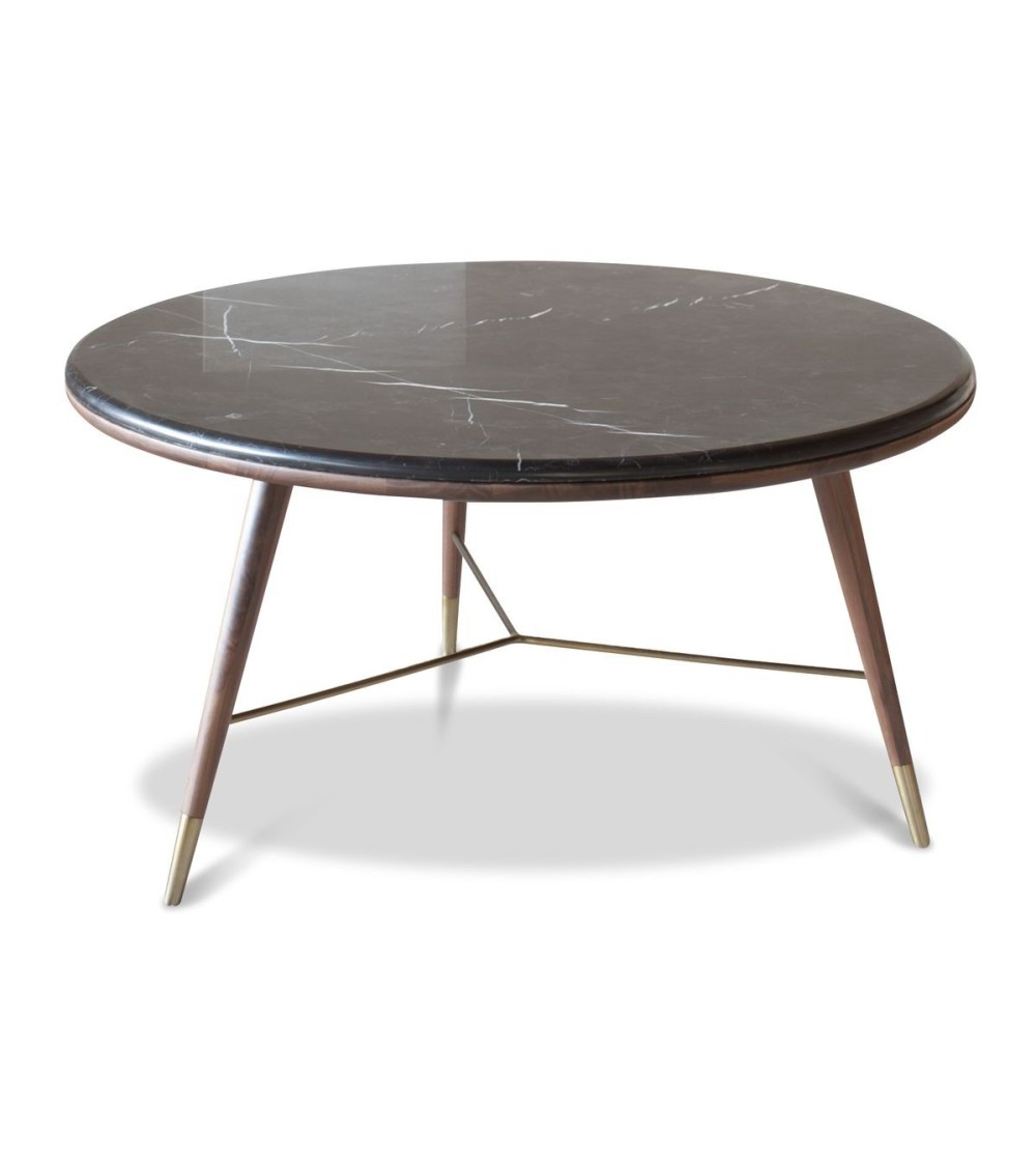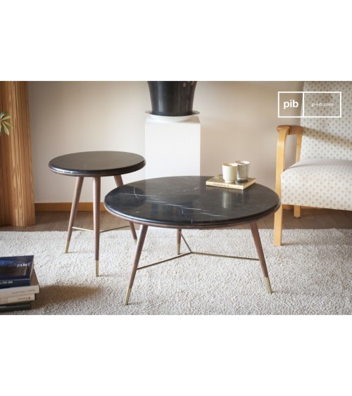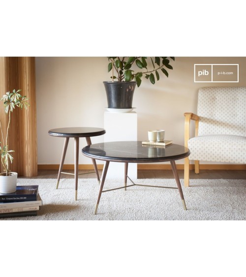 Ce produit vous est proposé par la marque pib. Élégance vintage et finitions d'exception. La table basse ronde Sivärt présente un très grand charme du fait de l'association entre le marbre noir, les quelques notes de laiton ainsi que le noyer. Ses pieds sont évasés et font penser au design très prisé des meubles du début du 20ème siècle, grâce aux éléments de laiton sur le bas ainsi que sur l'étoile traversante. Ces éléments permettent à cette table de pouvoir s'intégrer à toute décoration vintage, scandinave ou bien sobre et classique d'un appartement.