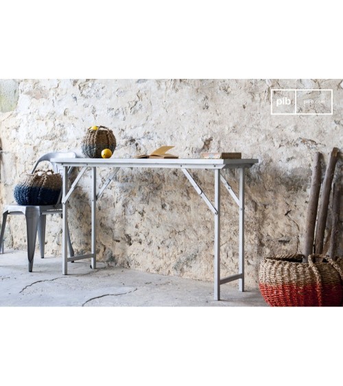 Ce produit vous est proposé par la marque pib. Console ou bureau, pliante et robuste. Résolument industrielle vintage par son style, assurément pratique par sa conception, cette console industrielle trouvera sa place dans des intérieurs aux styles très variés. Au quotidien, vous apprécierez son plateau en teck massif verni, robuste et facile d'entretien. Vous avez besoin de libérer l'espace le temps d'une soirée ? Profitez de la faible épaisseur de la console en position pliée, réduite à quelques centimètres, un aspect pratique qui fera la différence.