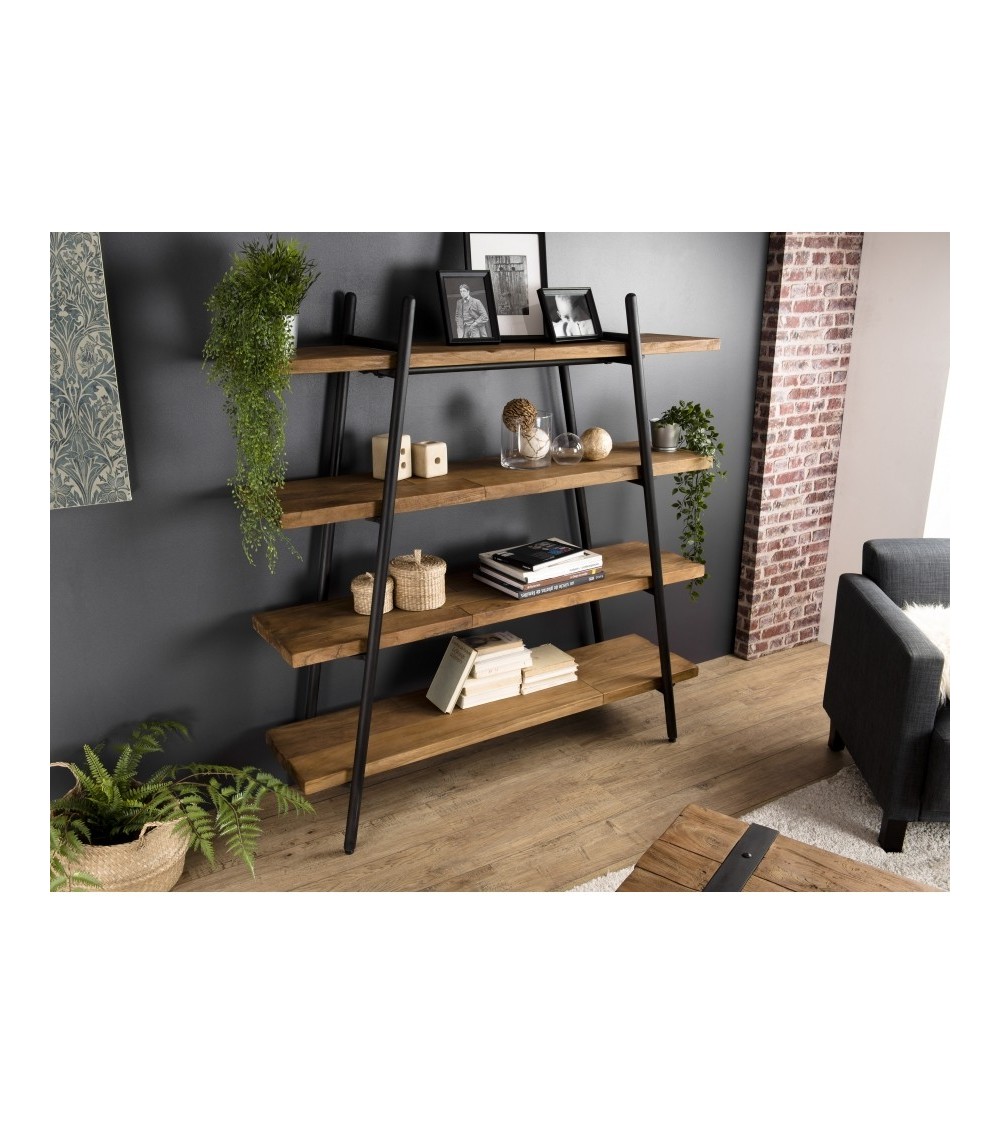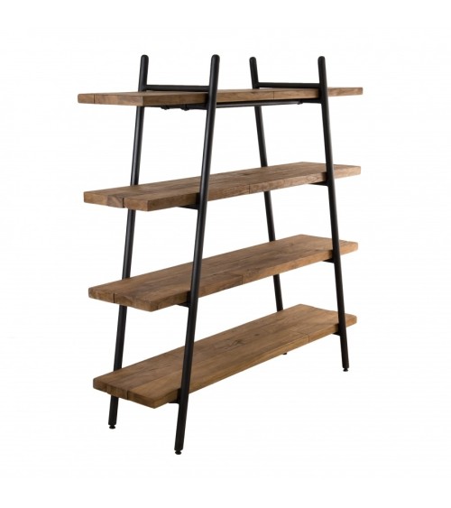 Étagère pyramidale 4 niveaux teck recyclé métal noir. Dimensions : 140 x 40 x 145,5 cm. Article en Teck recyclé et Métal. Cet article est composé de bois recyclé ! Le bois recyclé est un bois récupéré de vieilles charpentes, de coques de bateaux ou tout bois de récupération ayant déjà eu une longue vie. C'est ce qui lui donne cet aspect vieilli et authentique avec ses imperfections qui font tout son charme.   Acquérir du bois recyclé est une initiative écoresponsable qui permet de lutter contre la déforestation.