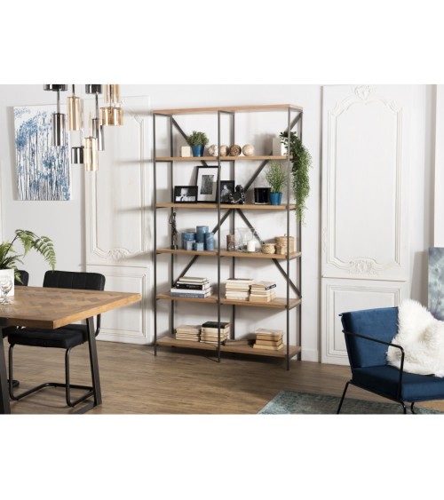 Étagère 5 niveaux bois et métal. Dimensions : 120 x 35 x 210 cm. Article en placage de Teck sur MDF et Métal. Tout l'esprit Haussmannien est réuni dans cette superbe collection en bois et métal qui apportera inévitablement une certaine élégance à votre intérieur. Vous aimez les meubles épurés et disposez de grandes pièces ? Cette étagère en teck et métal est l'article qu'il vous faut. Ces cinq niveaux sont géniaux pour disposer vos objets décos comme vous le voulez. Plutôt livres, bougies, cadres, plantes Tout est possible !