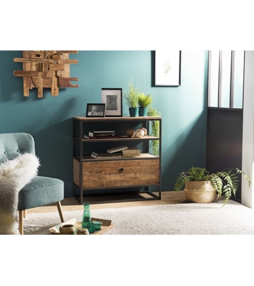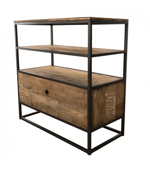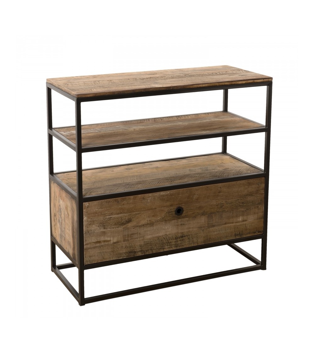 Etagère 1 tiroir en teck recyclé acacia mahogany métal noir