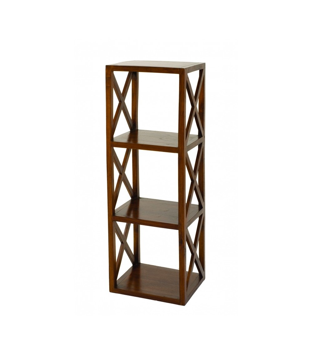 Étagère marron 3 cases 40 cm croisillons bois Mindi. Dimensions : 40 x 35 x 120 cm. Article en Mindi et Contreplaqué. Une touche ethnique, une ligne contemporaine pour rendre l'atmosphère chaleureuse. Etagère 3 niveaux Une étagère 3 niveaux en bois exotique et lignes épurées. Bois exotique Idéal pour y ranger vos livres ainsi que des objets de décoration, cette étagère en bois exotique se marie parfaitement à votre intérieur grâce à ses lignes sobres et décors croisillons.