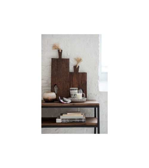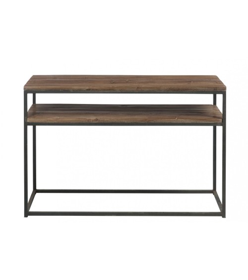 Craquez pour le style très tendance de cette console ALLEN. Son design très moderne qui allie le bois brut avec le métal, promet d'apporter une ambiance loft irrésistible à votre pièce. Profitez des 2 grands plateaux en bois pour poser vos bibelots. Cette console s'harmonisera aussi bien dans le salon que dans l'entrée de votre maison. Description technique : Dimensions : H: 78 x L: 120 x P: 40 cm.Poids : 17 kg.Hauteur entre les 2 plateaux bois : 15 cm.Hauteur depuis le sol jusqu'à la tablette : 55 cm.Structure en métal patiné noir et plateau en bois marron légèrement vieilli.Très stable, ce meuble est livré monté....