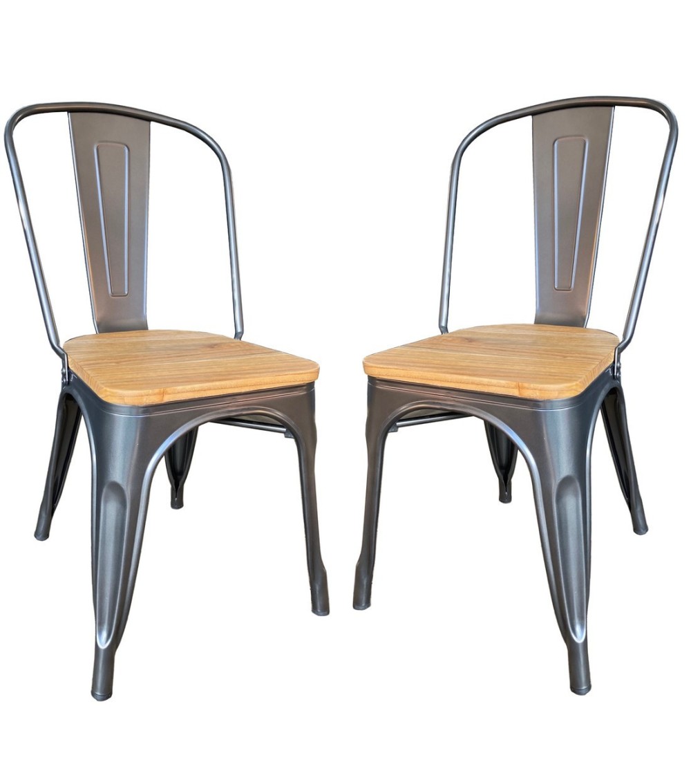 Lot de 2 Chaises de repas robustes en métal gris foncé avec une assise bois style loft/industriel/bistro. Cette chaise est un classique intemporel du mobilier industriel. Très belles finitionsHauteur d'assise 44 cm. Puisez votre inspiration dans notre collection Nevada pour créer un intérieur qui vous ressemble. . . Nous proposons des tables de repas, tables hautes en plusieurs dimensions et également des tabourets Nevada. Les structures des chaises et tables sont identiques ainsi que le bois des assises et plateaux. Nous vous offrons un large choix d'articles dans la collection Nevada pour créer de beaux ensembles de repas . . . Assise en orme massif naturel. Structure en acier gris anthracite. Tampons caoutchouc afin de ne pas abîmer votre sol. Assise et dossier à assembler.