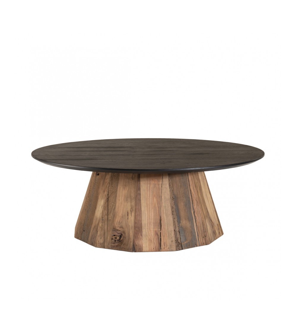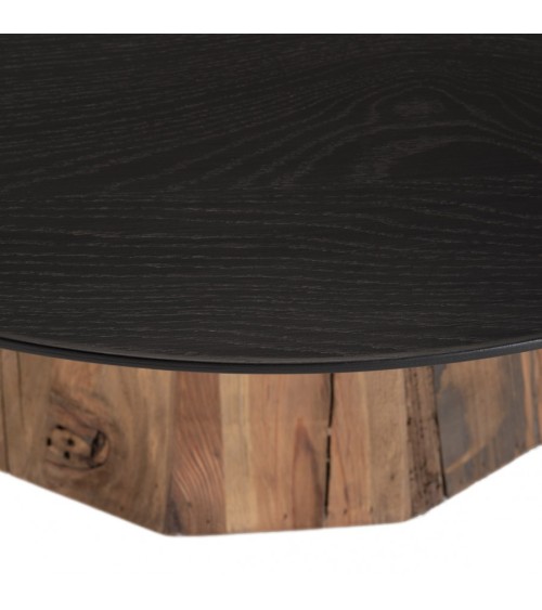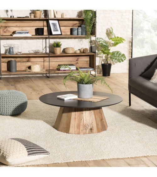 Table basse ronde 90x90cm bois Pin recyclé plateau noir piétement naturel. Dimensions : 90 x 90 x 32 cm. Article en Pin recyclé/Contreplaqué. Cet article est composé de bois recyclé ! Le bois recyclé est un bois récupéré de vieilles charpentes, de coques de bateaux ou tout bois de récupération ayant déjà eu une longue vie. C'est ce qui lui donne cet aspect vieilli et authentique avec ses imperfections qui font tout son charme. Acquérir du bois recyclé est une initiative écoresponsable qui permet de lutter contre la déforestation. Cette table basse ronde fera toute la différence chez vous. Elle présente des imperfections représentatives de sa composition en bois de pin recyclé. Son plateau noir crée un joli contraste avec sa base de teinte naturelle. La forme arrondie donnera du cachet à votre salon ou salle à manger.