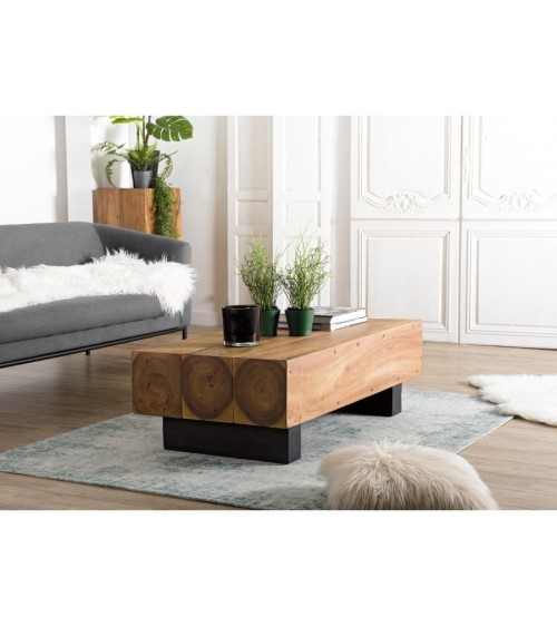 Table basse poutres 120x60cm bois Suar pieds noirs. Dimensions : 120 x 60 x 36,6 cm. Article en Suar.