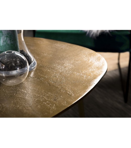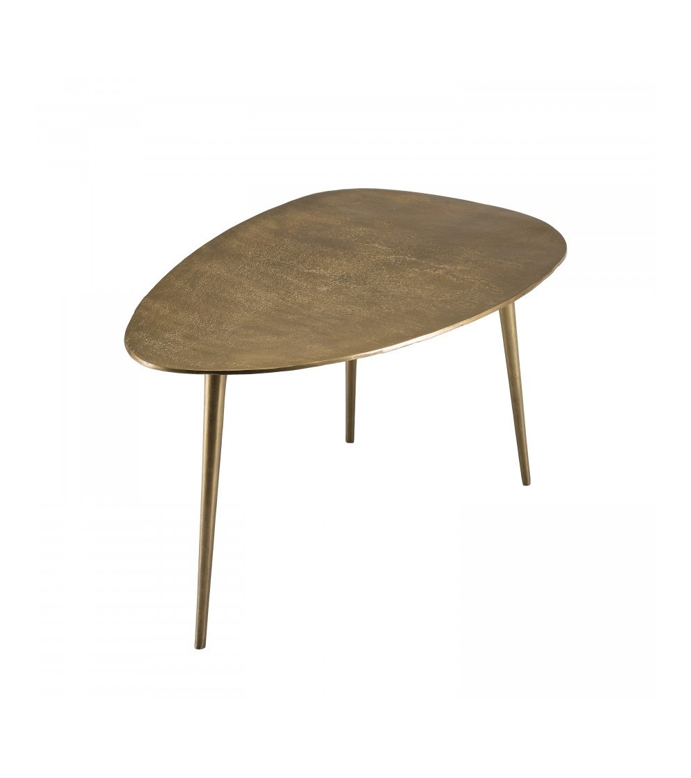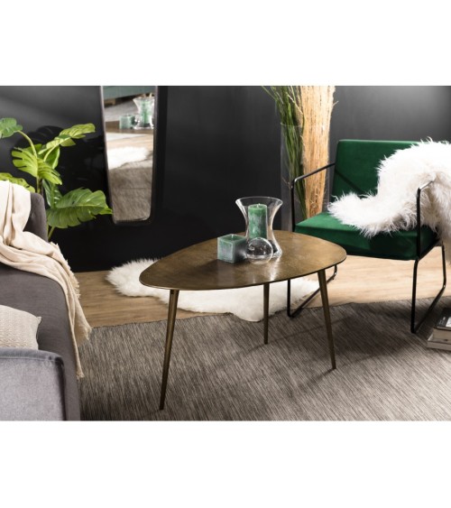 Table basse goutte d'eau aluminium doré dimension : 85 x 56 x 48 cm. Article en Aluminium et Métal. Collection indéfinissable tellement elle resplendit par la noblesse de sa matière. En un clin d'il, cette gamme aux allures orientales illuminera votre intérieur avec sa couleur dorée et argentée. Simple et tendance, cette adorable table basse goutte d'eau va illuminer votre salon. Dotée seulement de trois pieds, elle est originale. Sa teinte dorée s'accordera parfaitement à votre décoration actuelle !
