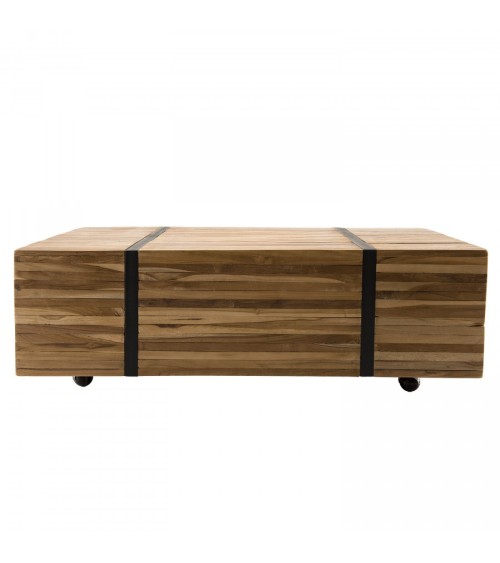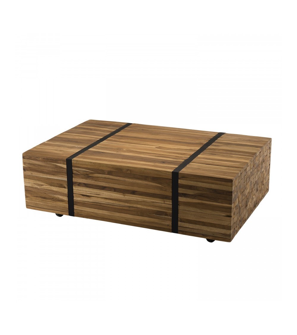 Table basse avec roulettes en teck recyclé cerclée métal noir L110