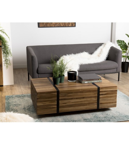 Table basse rectangulaire 110x70cm avec roulettes bois Teck recyclé cerclée métal noir. Dimensions : 110 x 70 x 37 cm. Article en Teck recyclé. Cet article est composé de bois recyclé ! Le bois recyclé est un bois récupéré de vieilles charpentes, de coques de bateaux ou tout bois de récupération ayant déjà eu une longue vie. C'est ce qui lui donne cet aspect vieilli et authentique avec ses imperfections qui font tout son charme. Acquérir du bois recyclé est une initiative écoresponsable qui permet de lutter contre la déforestation.
