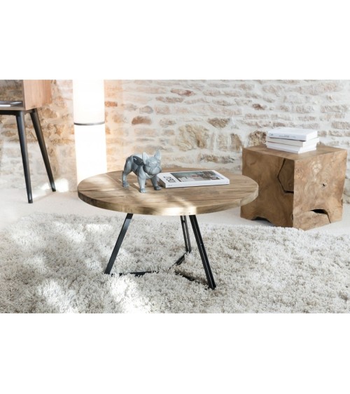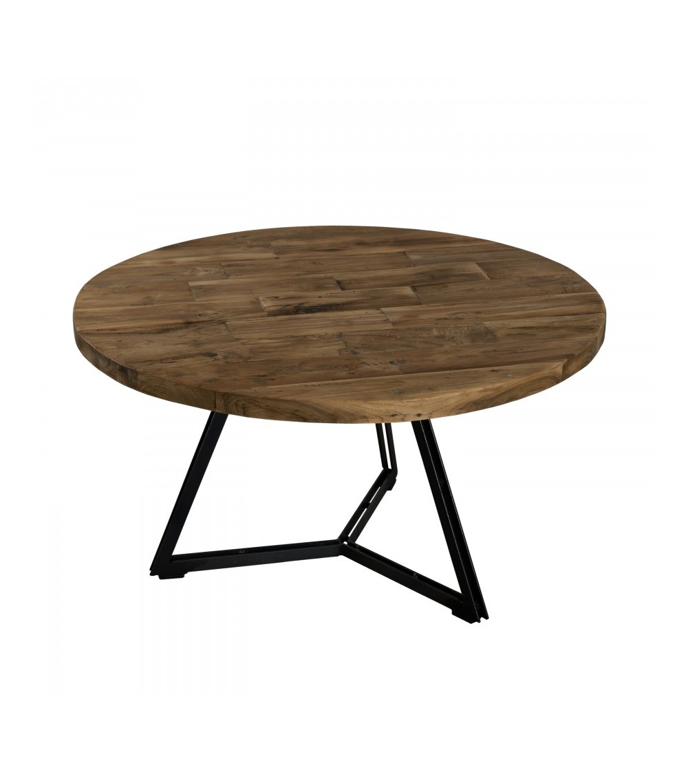 Table basse ronde en teck recyclé et pieds métal noir D75