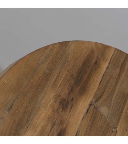 Table basse ronde 75x75cm plateau teck recyclé pieds métal noir. Dimensions : 75 x 75 x 41 cm. Article en Teck recyclé et Métal. Cet article est composé de bois recyclé ! Le bois recyclé est un bois récupéré de vieilles charpentes, de coques de bateaux ou tout bois de récupération ayant déjà eu une longue vie. C'est ce qui lui donne cet aspect vieilli et authentique avec ses imperfections qui font tout son charme. Acquérir du bois recyclé est une initiative écoresponsable qui permet de lutter contre la déforestation.