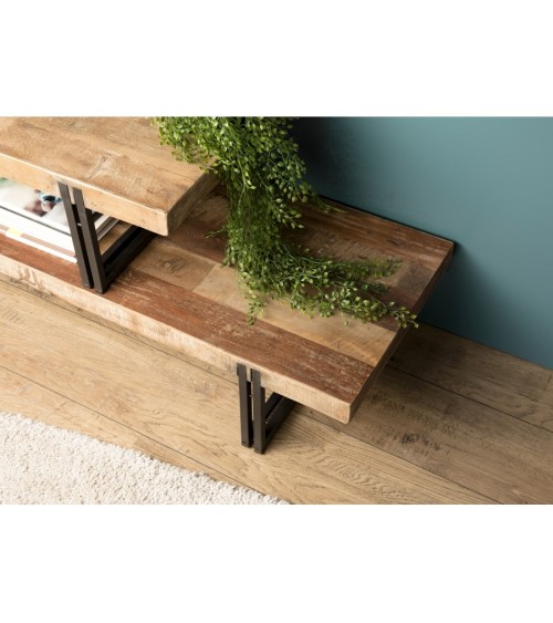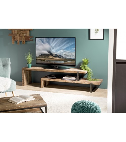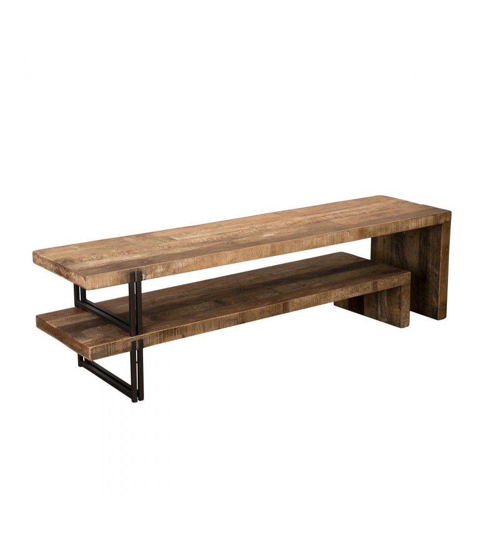 Meuble TV 2 niveaux en teck recyclé acacia mahogany métal noir