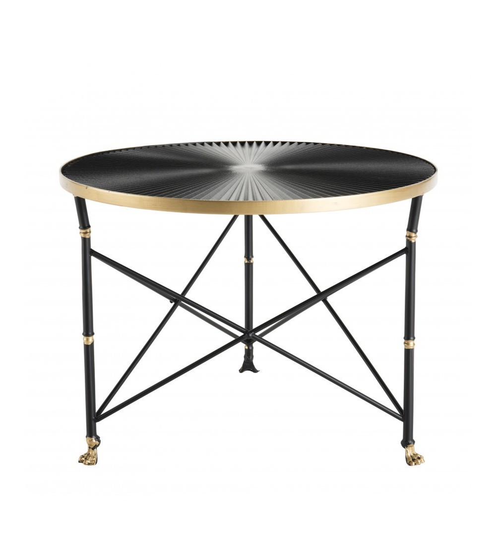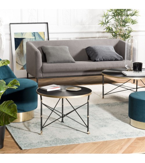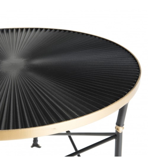 Table d'appoint ronde ceinture dorée pieds métal noir D61