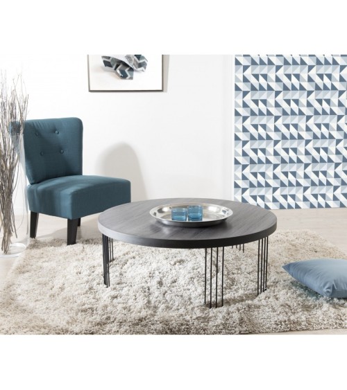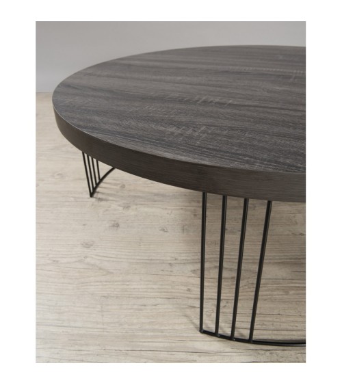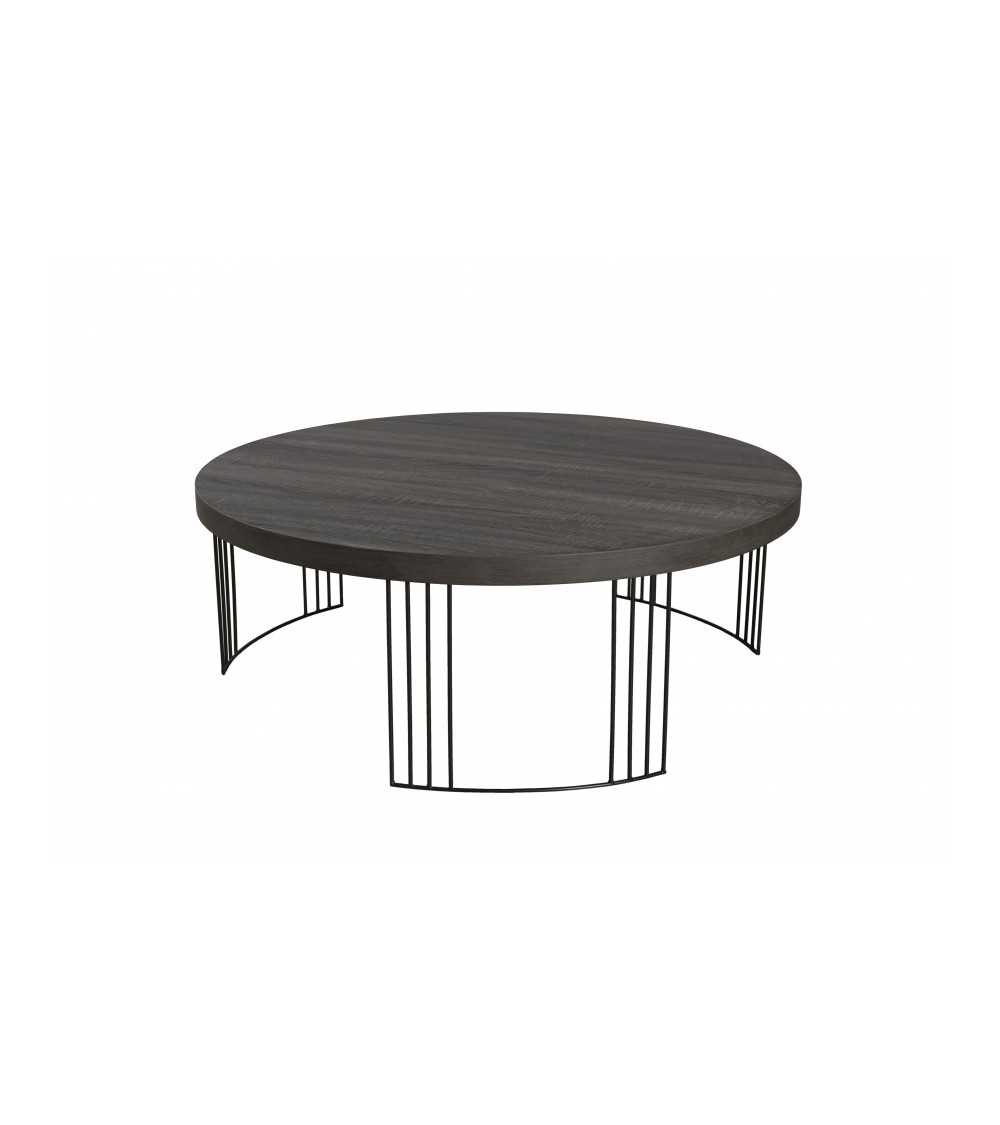 Table basse ronde plateau bois gris fonçé pieds métal noir D95