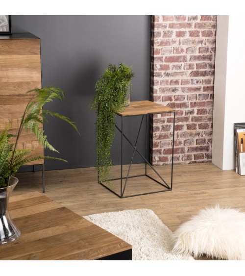 Table d'appoint petit modèle en teck recyclé et métal noir L35