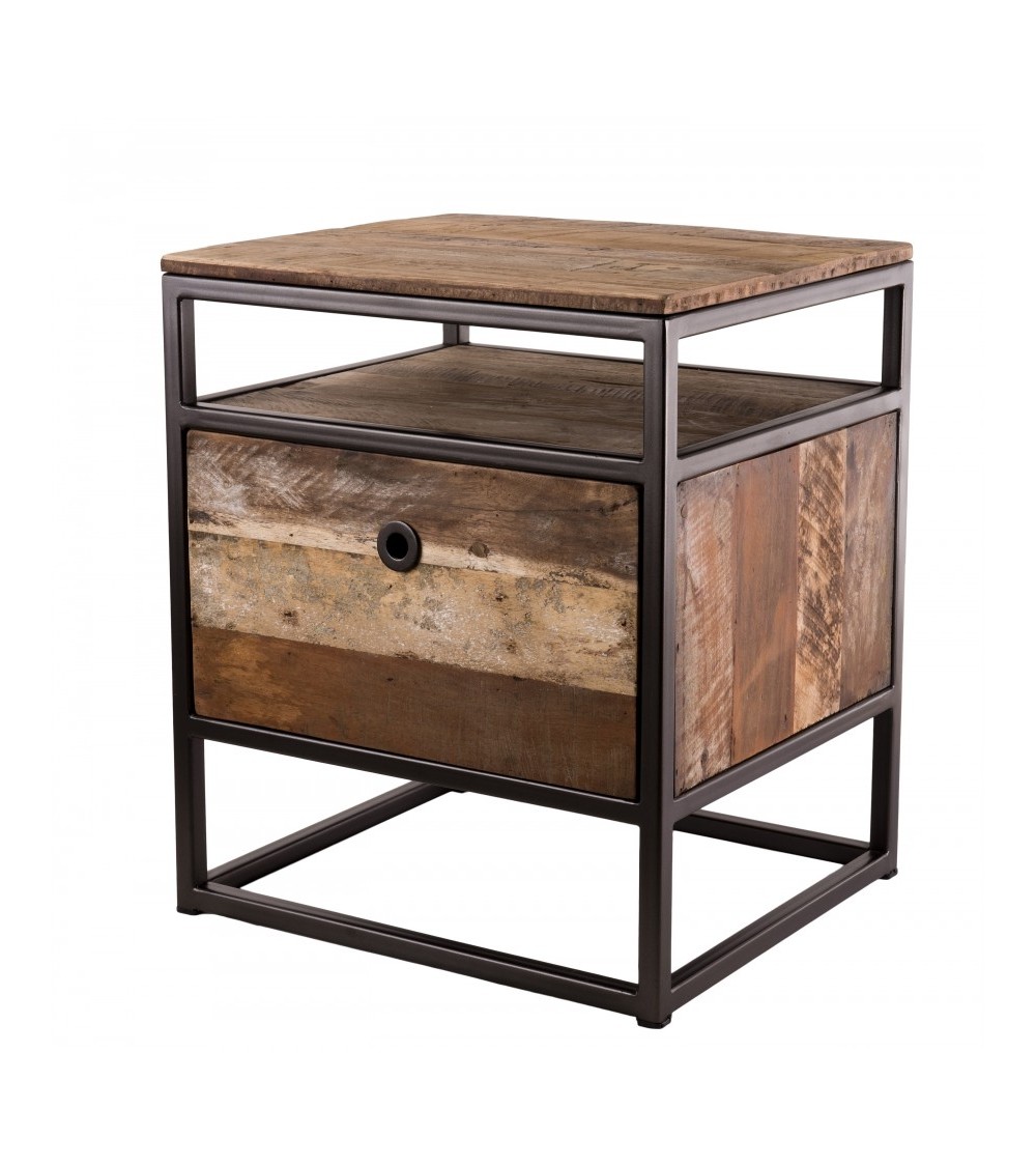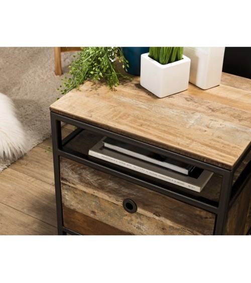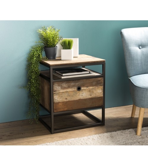 Table d'appoint tiroir en teck recyclé acacia mahogany métal noir L47