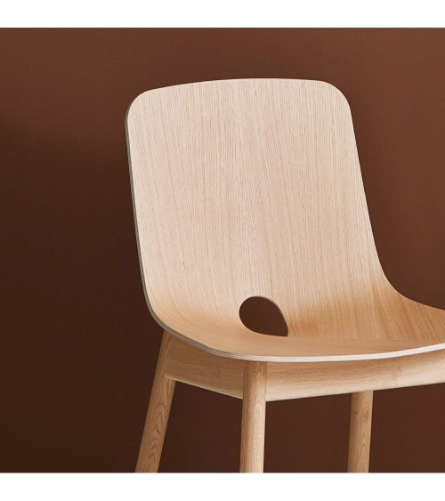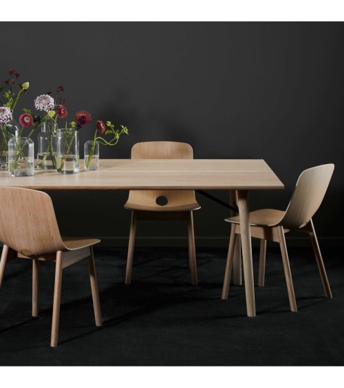 Le designer Kasper Nyman a eu recours à un concept des plus inhabituels pour créer la chaise Mono Dining. Contrairement aux chaises classiques, son assise et son dossier sont constitués d'un seul et unique panneau de bois plié. Cette technique de construction particulière a été rendue possible grâce au Grada, un matériau révolutionnaire développé par le fabricant Woud. y compris les patins en feutre.