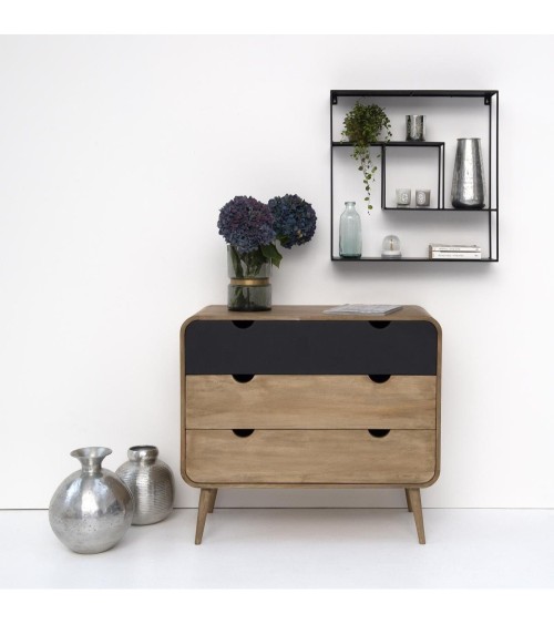 [Etagère murale carrée en métal filaire finition noire mate. Une étagère à la fois pratique et esthétique qui sera idéale dans un intérieur esprit industriel. Cette étagère murale offre un look épuré et minimaliste qui s'adapte à toutes les pièces de la m