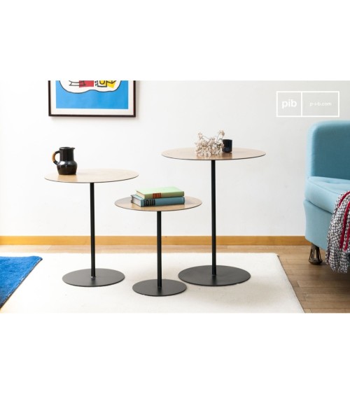 Ce produit vous est proposé par la marque pib. Élégant contraste entre le bois de chêne et le métal noir. La table d'appoint Xylème est composée d'un fin plateau métallique rond recouvert de bois de chêne, un épais vernis le protège des tâches. La fissure naturellement présente dans la section de bois a été comblée de noir et rappelle la teinte du piètement. Parfaitement vertical, le pied est constitué d'un long tube noir mat reposant sur un socle rond, noir également. Cette conception assure à la table une stabilité sans faille cette dernière est accentuée par un plateau exactement horizontal.