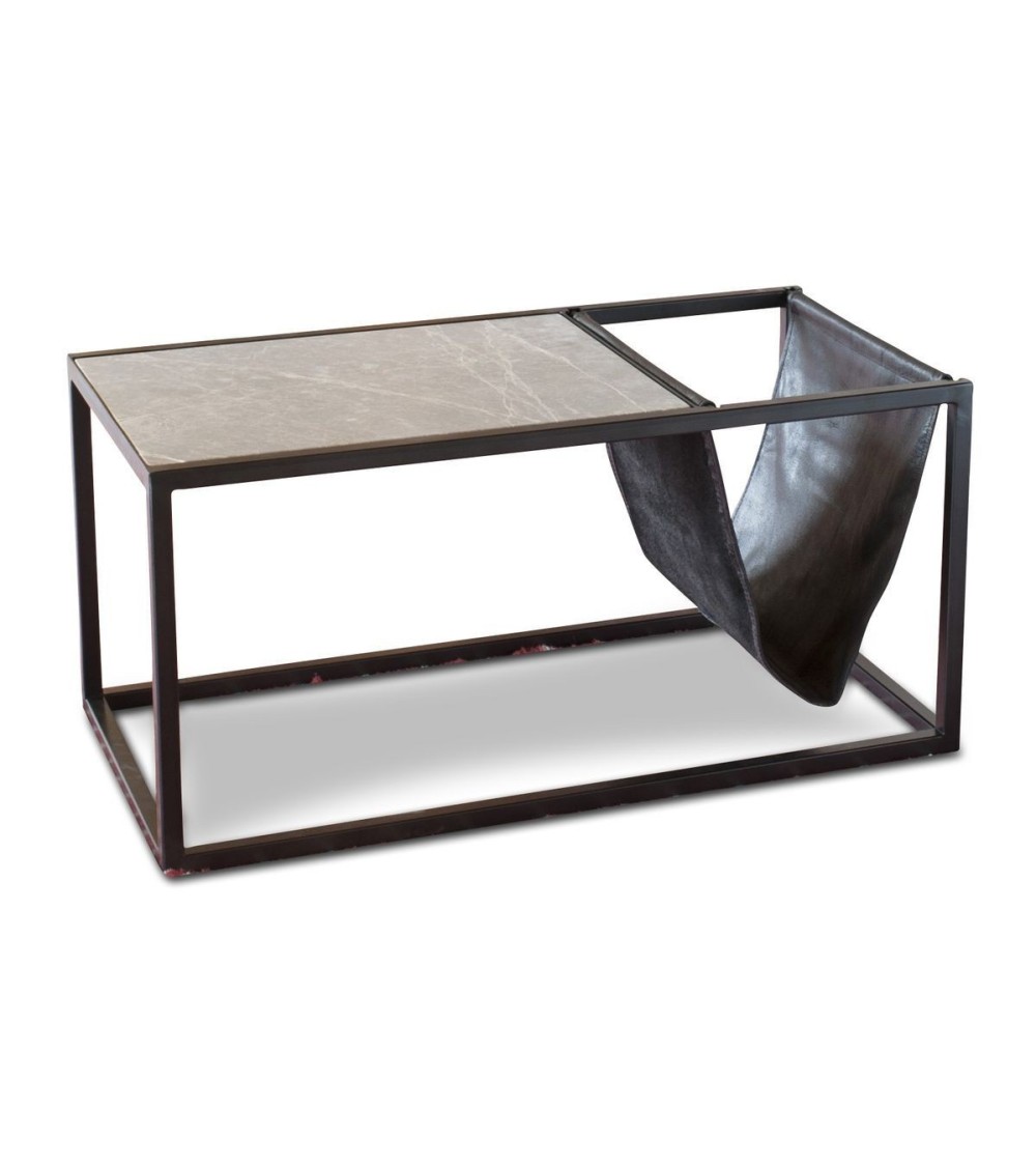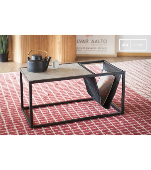 Ce produit vous est proposé par la marque pib. Ligne vintage, plateau en pierre et porte-revues en cuir. La pierre, le marbre, le métal et le cuir composent cette table basse porte-revues au charme indémodable qui fond un caractère allègre contemporain à la praticité. Laissez-vous conquérir par l'intelligence d'un meuble conçu pour être table et porte-revue à la fois à l'aide de ligne épurées et très délicates. Au service d'un corps en métal noir mat, vous trouverez un plateau amovible en marbre gris. Petite et solide mais aussi légère et attrayante, elle dévoile un caractère qui enrichira votre espace.
