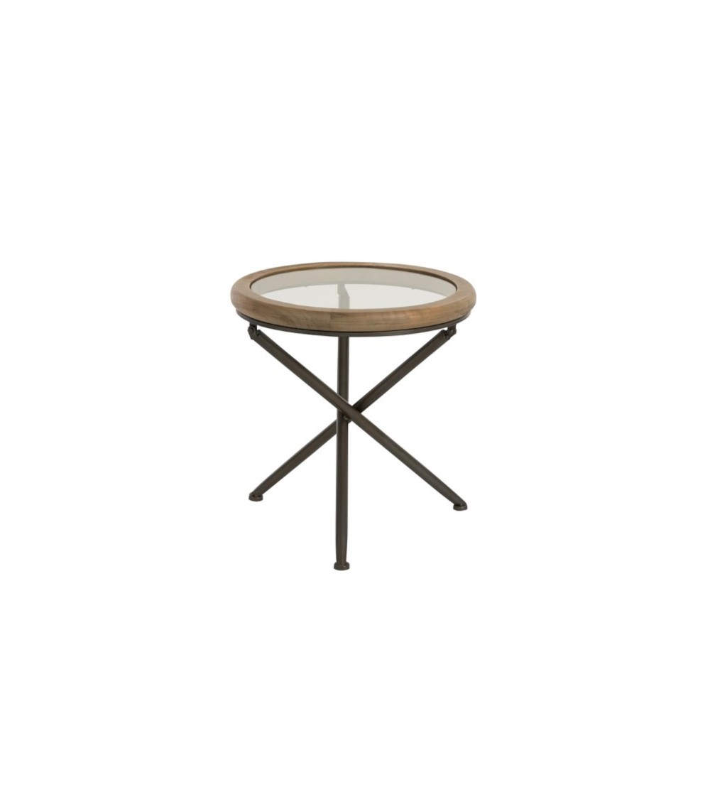 Le style épuré et design de cette table repose sur ses trois pieds croisés en fer forgé noir et son plateau en verre et en bois clair.Cet bout de canapé très moderne, s'harmonisera parfaitement avec tous les styles de déco de votre salon.Dans la même gamme retrouvez la table basse sous la référence : 85718. Description technique : Dimensions: H: 52 x L: 50 x P: 50 cm.Poids: 5 kg.Plateau en verre avec une ceinture en bois naturel. Piétement en métal patiné noir. ...