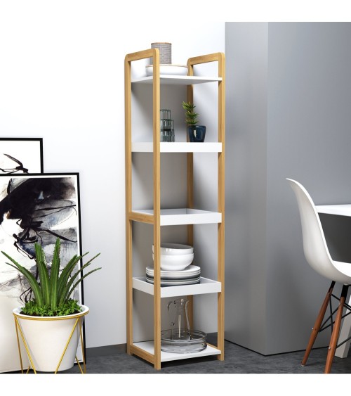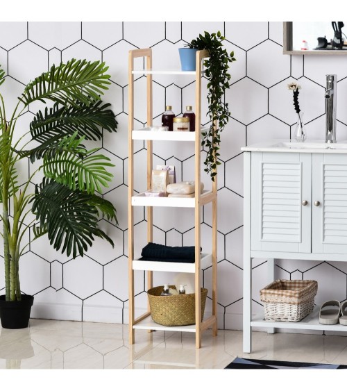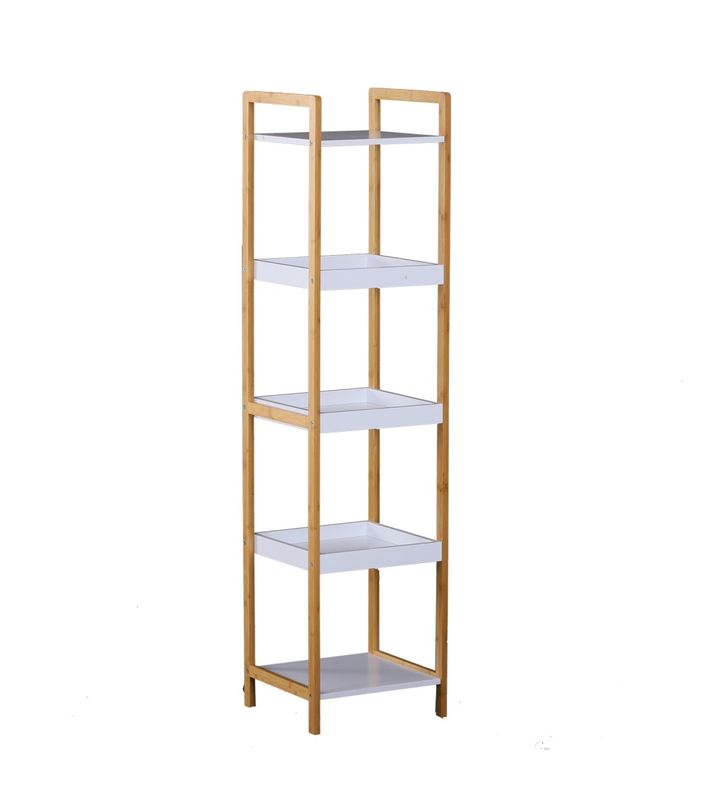 Cette splendide étagère de salle de bain en bambou équipée de 3 paniers et de 2 étagères ajoutera une touche cosy très tendance à votre pièce d'eau et vous fournira de nouveaux rangements très utiles.Caractéristiques :- Étagère de salle de bain bicolore bambou et blanc, idéale pour ajouter une touche cosy zen et naturelle à votre salle de bain- 5 niveaux composés de 3 paniers + 2 étagères vous offrant de nombreux espaces de rangement- Taille compacte au sol pour une installation possible dans tous les espaces- Conception et fabrication de la structure en bambou massif résistant à l'humidité- Lignes originales pour sublimer votre salle de bainSpécifications :- Couleurs : blanc et bambou naturel- Matériaux principaux : bambou et MDF- Dim. totales : 32L x 30l x 130H cm- Dim. paniers et étagères : 29L x 29l cm- Ecart entre chaque étagère et panier : 25 cm- Charge max. recommandée : 25 Kg- Livraison effectuée en un colis- Réf. : 836-087