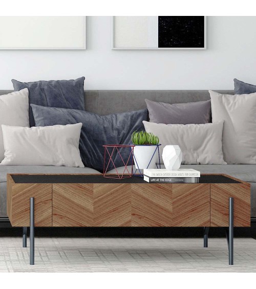 Table basse vintage avec tiroirClasse et vintage, cette jolie table basse ajoutera du cachet à votre salon. Ses pieds noirs en métal et son revêtement aux couleurs du noyer lui donnent une certaine élégance. Son grand tiroir intégré vous permettra d'y mettre vos télécommandes, vos magazines ou tout autre affaire que vous souhaiteriez ranger dans votre salon. Elle ira à merveille avec une décoration chic, design ou vintage ! Caractéristiques techniques :Couleur principale : Noyer (brun veiné de noir)Couleur secondaire : NoirPiètement : Métal, finition galvanoplastieMatériel : Panneaux MDF avec finition placage et laqueRangement : 1 tiroirSystème d'ouverture : Par le haut du tiroirPoids maximum supporté : 60 kgEntretien :Nettoyage facile à laide dun chiffon humideDimensions : Dimension totale : 120 x 68,2 x 42 cmPoids total : 43 kgDimensions des pieds : 35 x 72,6 cmDimensions du tiroir : 73,8 x 28,4 x 11,3 cmConditionnement : Le produit est conditionné dans un colis de :71 x 123 x 14 cm / 45 kg Montage facile une notice est fournie.* Livraison pas de porte* Garantie 2 ans