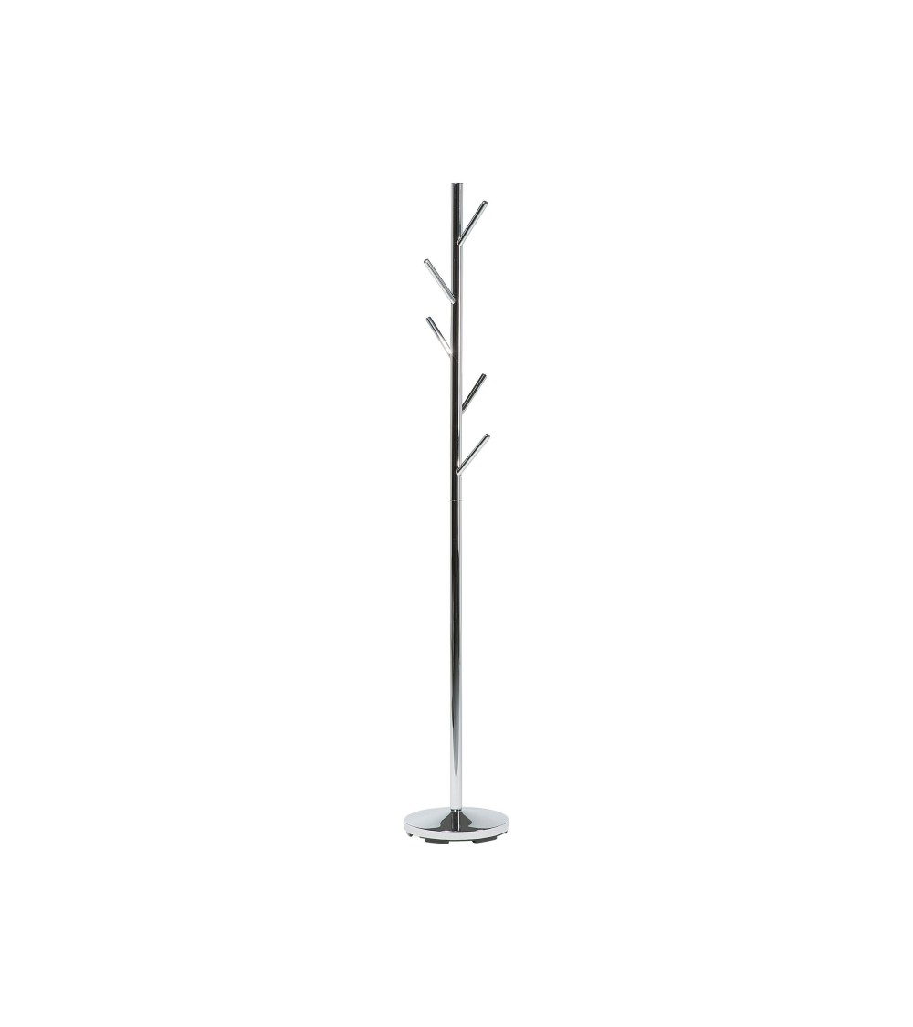 Porte-manteau élégant en chrome. Ce porte-manteau à la fois fonctionnel et contemporain est la pièce d'accent parfaite pour ajouter une touche d'élégance à votre entrée. La base lourde garantit une bonne répartition du poids. Avec ses lignes épurées en acier chromé, le porte-manteau offre 5 crochets pour vos vestes, sacs et chapeaux. Conçu comme un organisateur intelligent, le porte-manteau s'intègre parfaitement dans une chambre à coucher, un couloir ou une chambre d'amis.Détails: Type de produit: Porte-manteaux Style: Moderne Couleur principale: Argenté Type de matière: Acier Matière principale: Acier inox Finition: Chromé Crochets: 5 Dimensions: Dimensions de la base: 28x28 Profondeur: 28 cm Largeur: 28 cm Hauteur: 170 cm Poids: 6 kg Charge admise: 10 kg L`offre inclue: 1 x Porte-manteau Caractéristiques clés: Design et couleur tendance, En harmonie avec n'importe quel type de décoration, Matières de bonne qualité, Une conception solide et une excellente finition, Assemblage facile, autonome Informations d`assemblage: À assembler entièrement. 5 - 15 min Conseils de maintenance: Acier inox: 1.Pour les éléments en cuivre ou chromés, utilisez un produit de polissage spécial 2.Pour éviter les rayures, n'utilisez pas de nettoyants abrasifs 3. Nettoyez avec un chiffon et un détergent doux, essuyez bien ensuite.