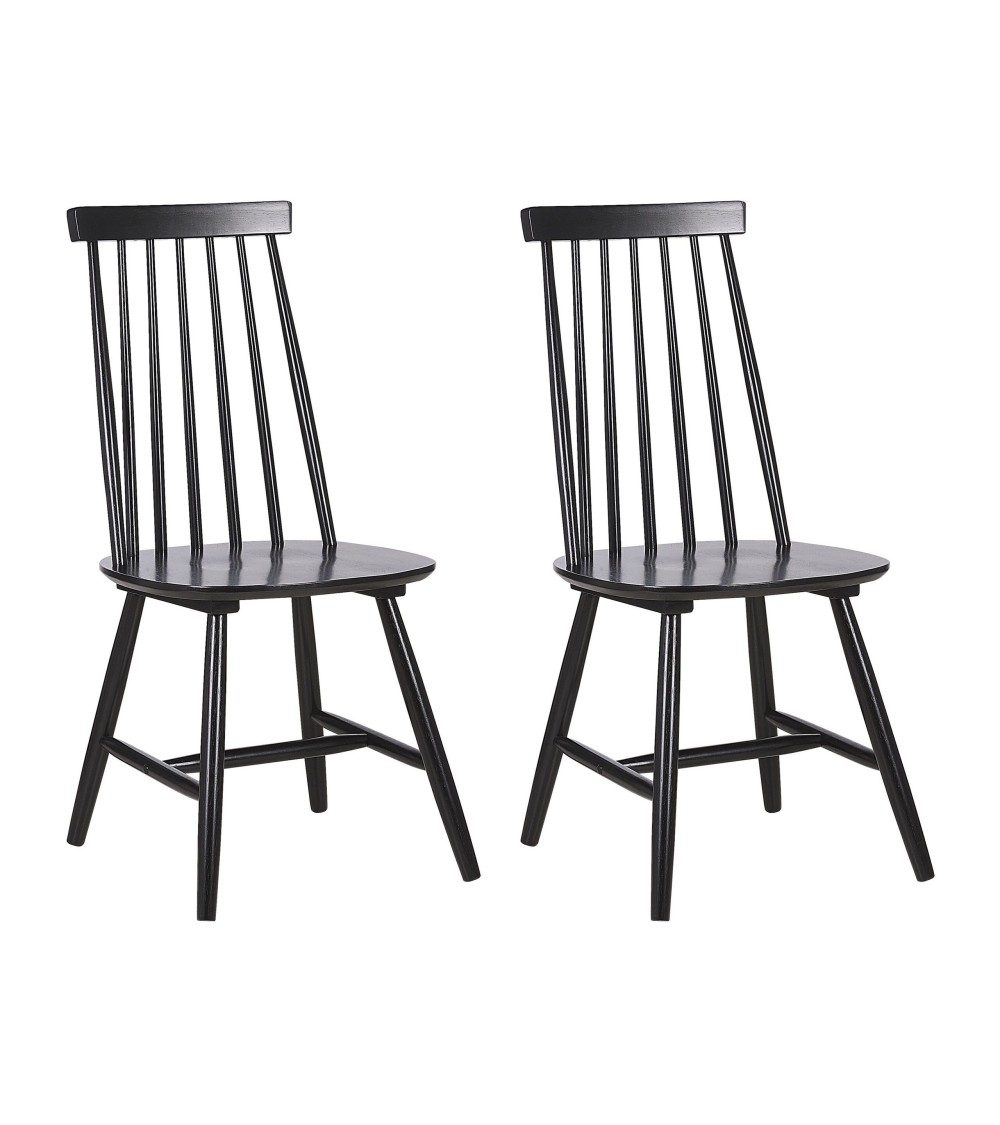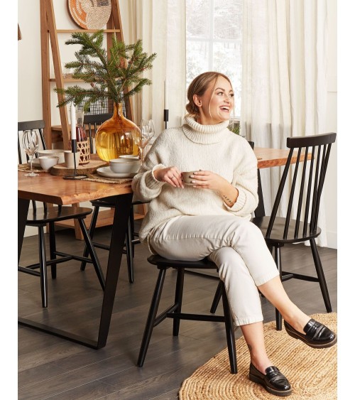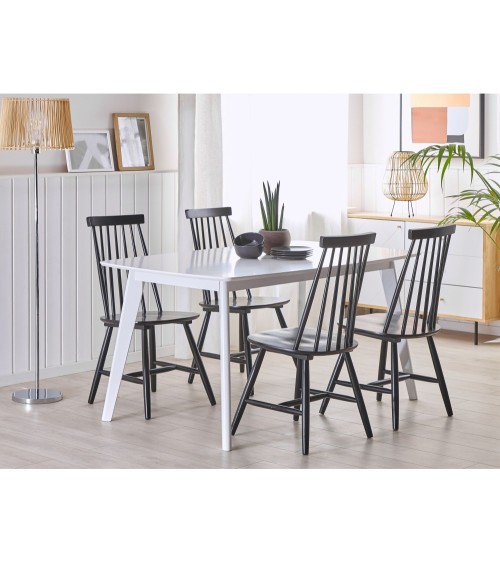 Ces chaises complèteront à merveille le look de votre salle à manger. Fabriqué à partir de bois massif durable et peint en noir, l'ensemble est laqué pour un fini brillant délicat. Le design classique et l'assise large sont complétés par un dossier incliné en lattes qui confère aux meubles un style scandinave et un confort sans égal. Elles peuvent être associées à une table dans une salle à manger ou bien seules dans une cuisine ou un salon.