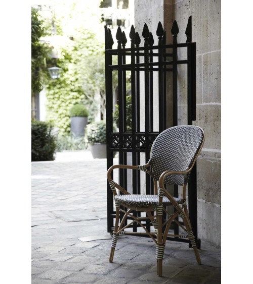 Le fauteuil de repas Isabelle se caractérise par son style Bistro authentique. Conçu par Sika-Design, ce fauteuil est composé d'une structure en rotin naturel brut et de fibres synthétiques pour le tressage (polyéthylène), et il est dédié à un usage extérieur sous abris afin de ne pas être en contact direct avec la pluie. Empilable par trois, ce joli fauteuil de repas vous apportera un gain de place et du style grâce à son charmant style Bistro Parisien au design Danois. L'alliage du rotin naturel et des fibres synthétiques lui apporte un côté typiquement scandinave et un maximum de confort grâce à son dossier ergonomique et ses accoudoirs. Le fauteuil Isabelle est vendu sans coussin et il est disponible en plusieurs coloris afin de s'adapter parfaitement à vos extérieurs et vos envies. Ce fauteuil existe également sans accoudoirs. Ils sont magnifiques autour d'une table café modulable avec un plateau teck ainsi qu'un pied en fonte.