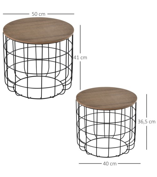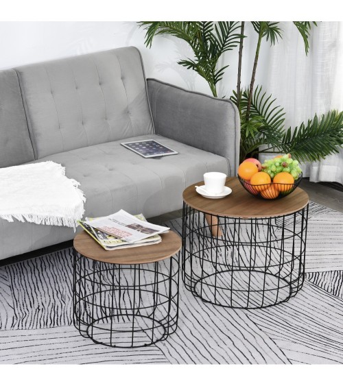 Ce superbe lot de 2 tables basses gigognes rondes style industriel apportera une touche d'élégance supplémentaire à votre intérieur. Leur taille compacte (2 tables encastrables) et leur légèreté vous permettront de les déplacer à votre guise et de les utiliser suivant vos besoins : tables basses type tables à café, bouts de canapé, guéridons, etc...Caractéristiques :- Lot de 2 tables basses gigognes rondes style industriel- Idéal pour ajouter une touche d'originalité élégante supplémentaire à votre intérieur- Forme géométrique, lignes épurées : véritable atout charme- Plateaux Ø 50 cm et Ø 40 cm, permet de poser magazines, journaux, télécommandes, verres, décorations, etc...- Tables compactes et légères, facile à déplacer suivant vos besoins et envies : tables basses type tables à café, bouts de canapé, guéridon, etc...- Les 2 tables sont encastables : idéal pour optimiser votre espace libre disponible- Montage ultra-rapide, installation et utilisation quasi-immédiate !Spécifications :- Coloris : noir et bois- Matériaux principaux : métal, panneaux de particules- Dimensions grande table : Ø 50 x 41H cm- Dimensions petite table : Ø 40 x 36,5H cm- Charge max. recommandée : 20 Kg (par table)- Livraison effectuée en un colis- Réf. : 833-792V90