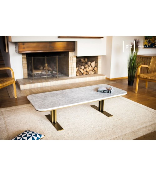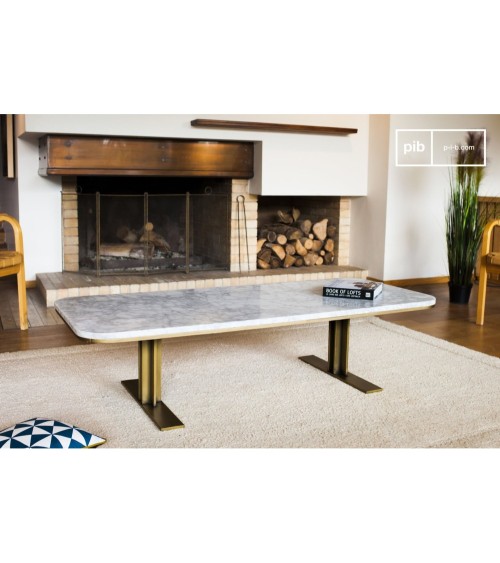 Ce produit vous est proposé par la marque pib. L'alliance marbre et laiton aux accents art-déco. La table basse en marbre Carrera dispose d'un élégant plateau en marbre de carrare clair contrastant avec son piètement en laiton doré lumineux et à l'aspect vintage. Son pied central lui confère un design moderne mais tout en se rattachant au look rétro de la milieu du vingtième siècle. Une pièce qui saura habiller très facilement votre espace salon ou espace lecture, accompagné d'un canapé moderne ou vintage, d'une jolie plante, d'un tapis berbère, et d'un luminaire sur pied design. A compléter avec la table d'appoint de la même gamme pour créer une belle unité.