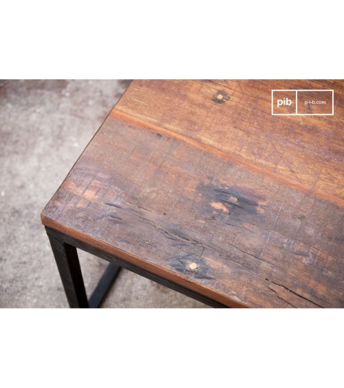 Ce produit vous est proposé par la marque pib. Table basse de style industriel en bois massif. Une table basse au look industrielle avec une structure métallique peinte de couleur noir arborée par un plateau de bois massif recyclé qui vous laissera voir son vécu par les différentes nuances clairs et sombres qui apparaissent. Vous pourrez la compléter par des poufs vintage en métal par exemple, ou encore dans votre salon en face de votre canapé. Grace à l'épaisseur de son bois massif et sa structure métallique pour un poids total de 22 kilos vous bénéficierez d'une robustesse certaine à toute épreuves.