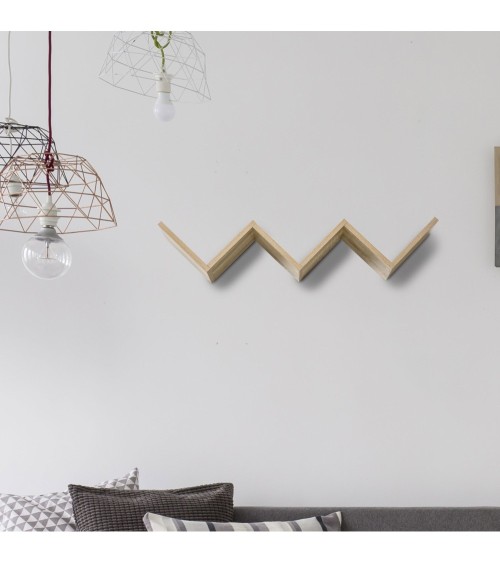 Etagère murale design contemporain en V à la fois chic et pratique. Elle offre un bel espace de rangement pour mettre tous vos livres, CD et autres objets de déco. Le bois apporte une touche naturelle à votre intérieur. L'étagère convient parfaitement pour une chambre, un bureau ou encore dans le salon. A vous de choisir ! Caractéristiques : - Design sobre et moderne avec des étagères en forme de zig zag en V- Idéale pour ranger des CD, DVD, livres, albums, photos et autres objets de décoration- Etagère murale pour libérer de la place au sol - Panneaux de particules classe E1 avec surface en mélaminé pour un usage pérenne et un entretien facile- Utilisation polyvalente, convient parfaitement à une chambre, dans un bureau ou dans le salon- A monter soi-mêmeSpécifications :- Couleur : imitation bois chêne clair- Matériau principal : panneaux de particules classe E1- Dimensions totales : 80,6l x 16P x 15,2H cm- Dimensions étagère en forme de V : 18,5L x 18,5l cm- Charge max recommandée : 5 Kg (au total)- Livraison effectuée en un colis- Réf. : 836-266ND