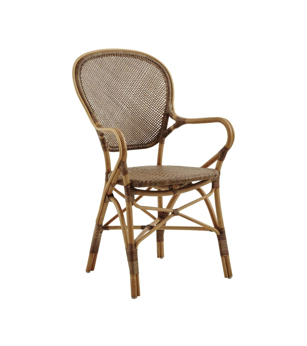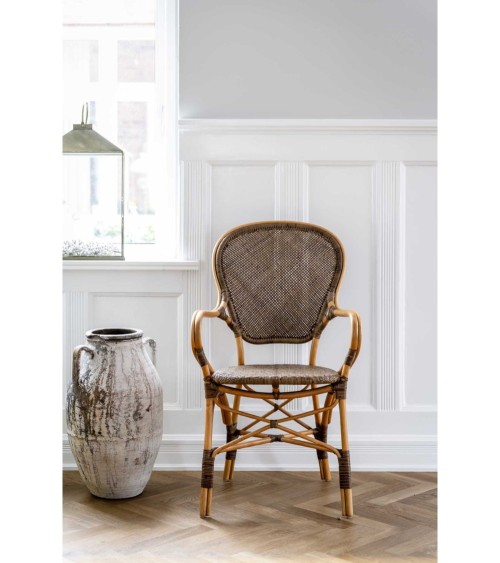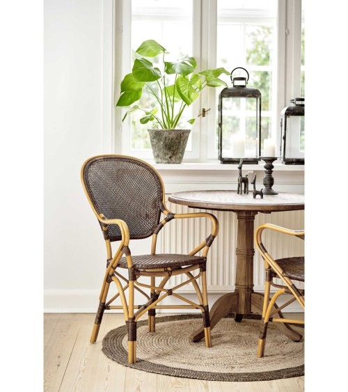 Solide et confortable, le fauteuil repas Rossini de la marque Sika-Design convient aussi bien à un usage personnel que professionnel. Construit en rotin naturel laqué et tressé à la main, il vous fournira une atmosphère chaleureuse et authentique. Au niveau de l'assise nous retrouvons un tressage raffiné en chevron, puis un tressage en croisillons sur le dossier. Il faut deux jours aux ouvriers tisseurs de rotin pour fabriquer un fauteuil repas Rossini. Ils utilisent un jour pour faire le dossier, un jour pour faire le siège et une heure pour plier le cadre. Ce fauteuil rustique est disponible en plusieurs coloris et il peut être empilable.Il est vendu sans coussin et existe également sans accoudoirs en fonction de vos goûts et de vos envies. C'est la chaise au Design Danois par excellence.