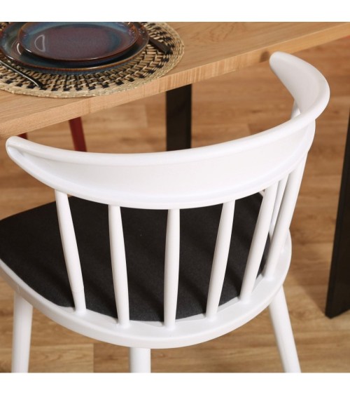 Vous aussi, optez pour un léger côté rétro avec la chaise de salle à manger DINGONO ! Vous allez craquer pour son allure vintage rappelant les années 90.  Cette chaise néo rétro est conçue en plastique aspect bois et possède un coussin lui procurant un confort optimal. Placez plusieurs chaises vintages DINGONO sous votre table pour un look accordé et harmonieux, ou alors vous pouvez choisir un look dépareillé en mettant une ou deux chaises DINGONO avec une chaise RAY et une chaise VETY. Et pour encore plus de style, n'hésitez pas à varier les couleurs. En effet, cette chaise en bois existe en différents coloris : blanc, bleu ou rouge.  Niveau entretien, la chaise DINGONO se nettoie très facilement.  Dimensions :Hauteur : 78.5 cmLargeur : 52 cmProfondeur : 47.5 cmHauteur d'assise : 44 cmBon à savoir :Entretien : chiffon humideMatière(s) de l'assise : Tissu polyesterMatière(s) principale(s) : Polypropylène + TissuMatière(s) des pieds : PolypropylèneMatière(s) de la structure : PolypropylèneMontage : Montage rapideNombre de personnes : 1 personneProfondeur d'assise : 40 cmRevêtement : Tissu polyesterStyle : VintageType de mousse : Polyuréthane
