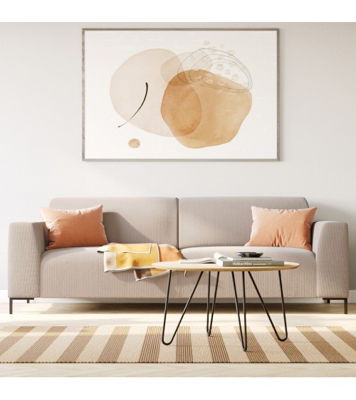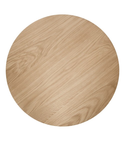 Poids : 8.4kg Dimensions: - Diamètre : 80 cm- Hauteur : 40 cm- Epaisseur du plateau : 2 cmEntretien : Utiliser un chiffon doux avec un peu d'eau savonneuse, rincer et sécher.Materiaux : MDF plaqué bois de chênePieds en métalMontage : A assembler, notice incluseInformations : Poids max : 20 kgInformations colis : 88x86x14,5 cm