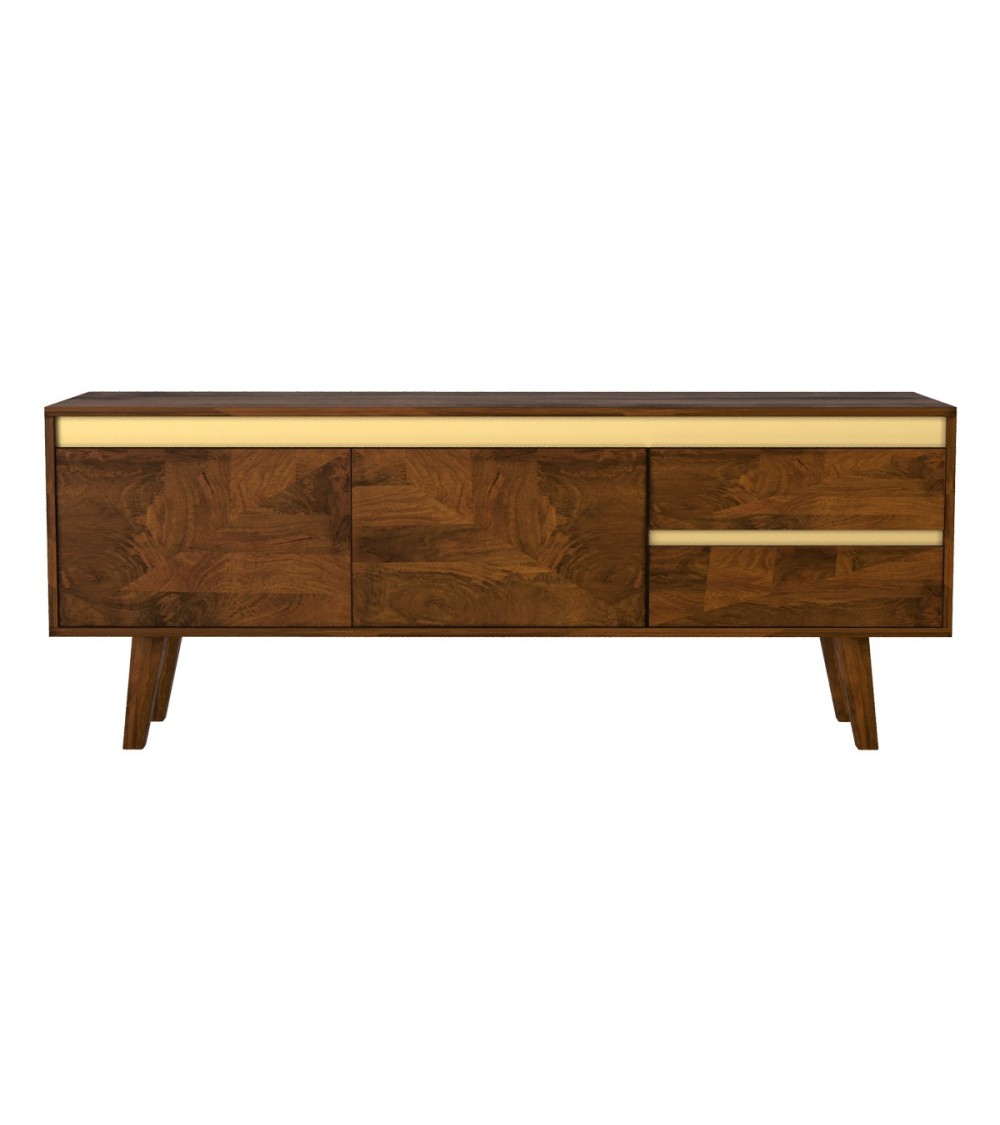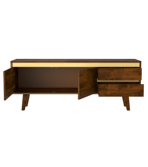 Meuble TV en bois de manguier détails dorés 145 cm