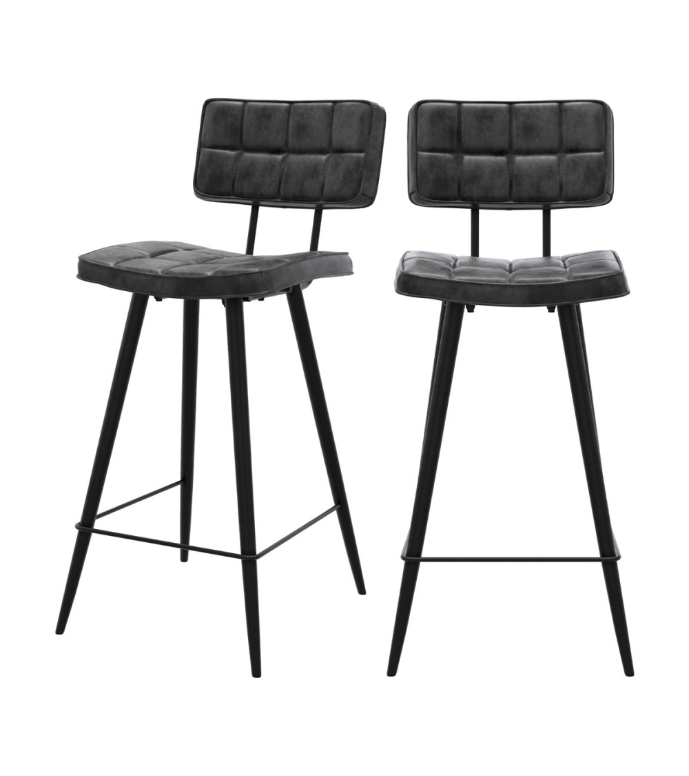 Chaise de bar mi-hauteur 65 cm capitonnée gris/noir (x2)