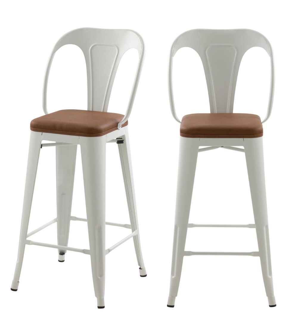 Chaise de bar mi-hauteur blanche et marron 66 cm (lot de 2)