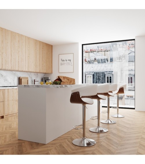 Chaise de bar réglable 59/81 cm en cuir synthétique blanc