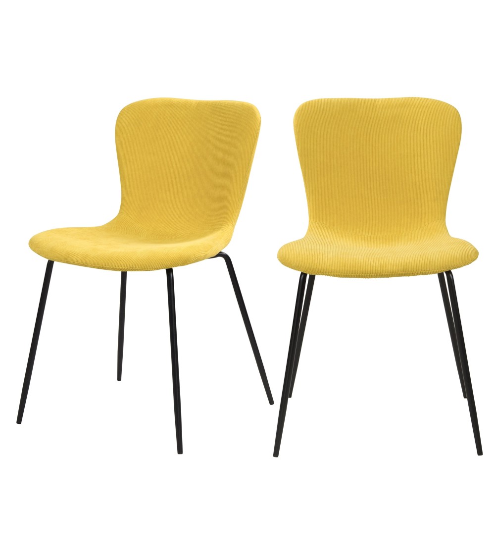 Chaise en velours côtelé jaune et pieds en métal (lot de 2)
