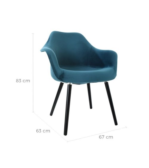 Poids : 9kg Dimensions: - Largeur : 67 cm - Profondeur : 63 cm - Hauteur : 83 cm- - Hauteur d'assise : 50,5 cm - Profondeur d'assise : 47 cm- Epaisseur d'assise : 8 cm - Hauteur des accoudoirs : 67 cm- Hauteur du dossier : 32,5 cmEntretien : Tester le détachant sur un endroit peu en vue, l'arrière du fauteuil ou d'un coussin par exemple. Utiliser un chiffon ou un coton-tige humecté de détachant.Materiaux : Pieds en bois vernis Revêtement de la coque en velours Garnissage en mousse polyuréthane de densité 32kg/m³Montage : Pieds à assembler, notice incluseInformations : Notice de montage inclusePoids maximum supporté : 140 kg