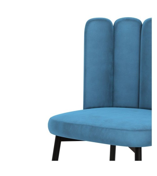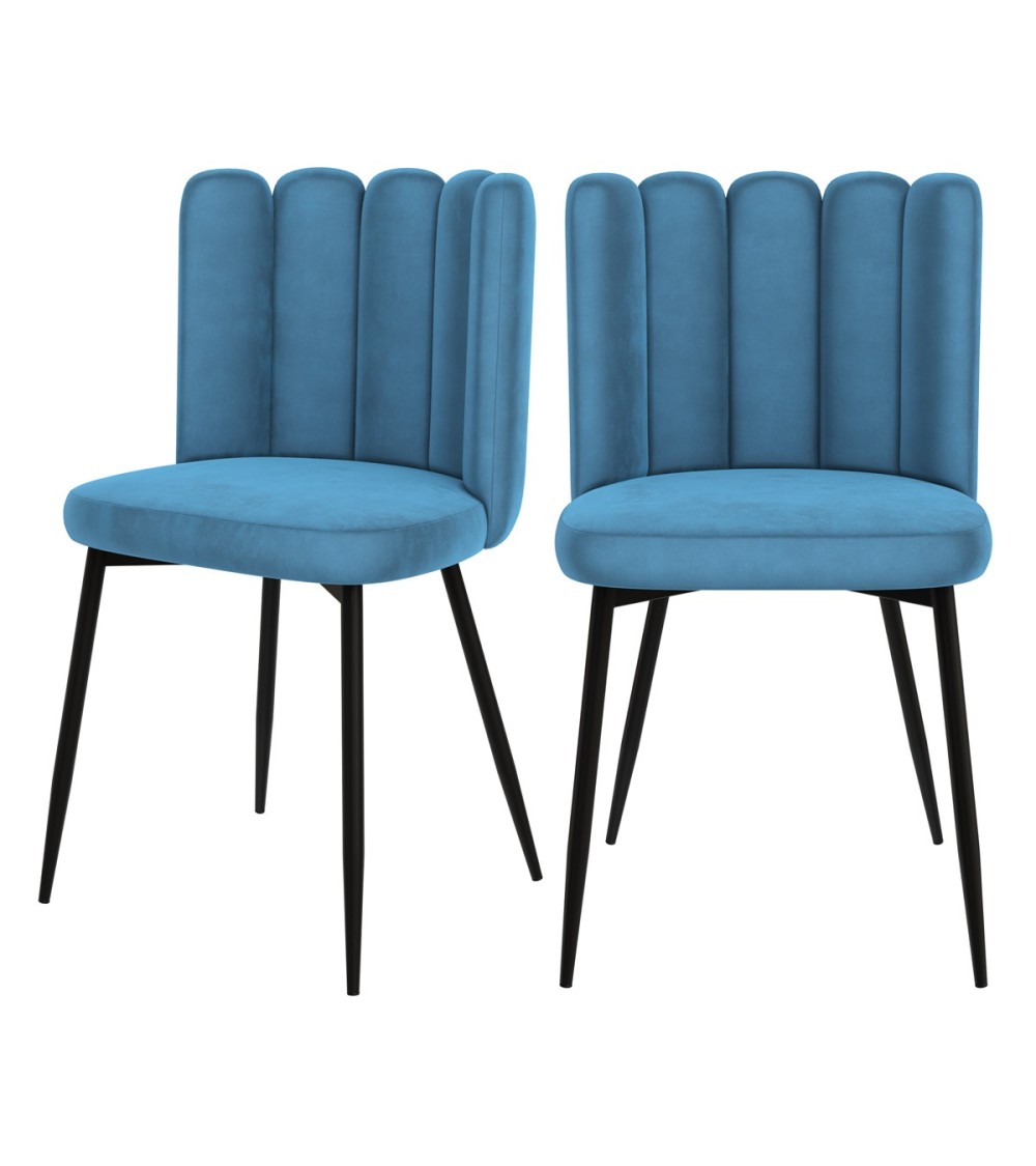 Chaise en velours bleu et pieds en métal noir (lot de 2)