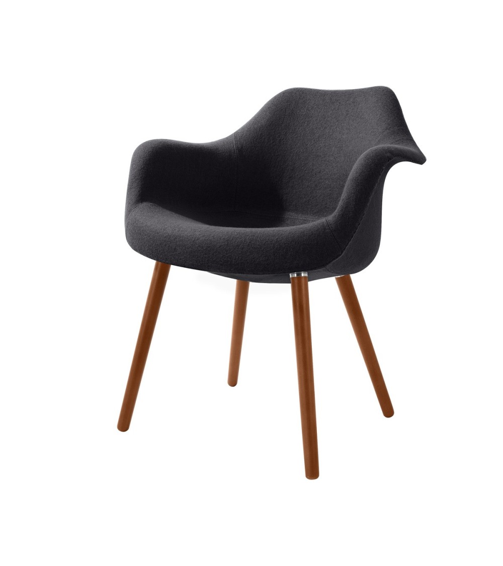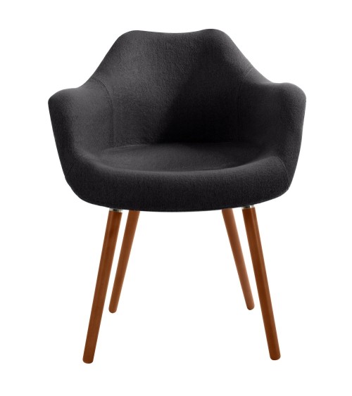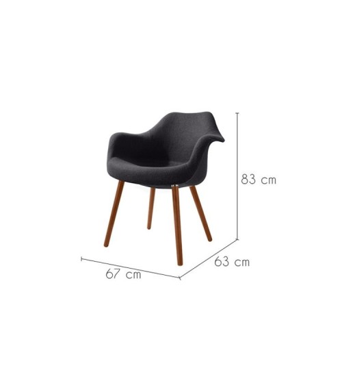 Poids : 9kg Dimensions: - Largeur : 67 cm - Profondeur : 63 cm - Hauteur : 83 cm- - Hauteur d'assise : 50,5 cm - Profondeur d'assise : 47 cm- Epaisseur d'assise : 8 cm - Hauteur des accoudoirs : 67 cm- Hauteur du dossier : 32,5 cmEntretien : Utiliser un chiffon doux trempé dans un mélange d'eau et de savon. Sécher rapidement.Materiaux : Pieds en bois de hêtre teinté, finition au vernis nitrocellulosique.Revêtement de la coque en tissu 40% cachemire et 60% polyester.Assise : garnissage en mousse polyuréthane de densité 58kg/m³ avec surcouche haute résilience de densité 32kg/m³.Dossier et accoudoirs : garnissage mousse polyuréthane de densité 58kg/m³.Montage : Pour que la chaise soit stable, vérifiez au montage que les pieds avant soient plus longs que les pieds arrière.Informations : Poids maximum supporté : 140 kgInformations colis : 64 x 59 x 54 cm