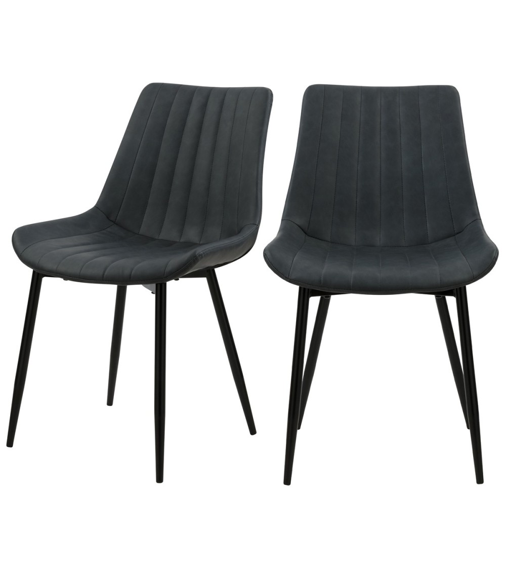 Chaise en cuir synthétique gris foncé et métal noir (x2)